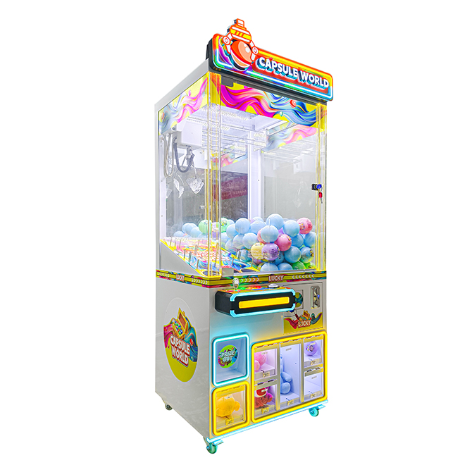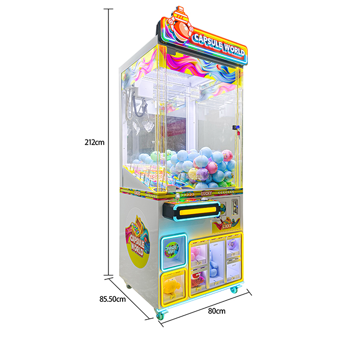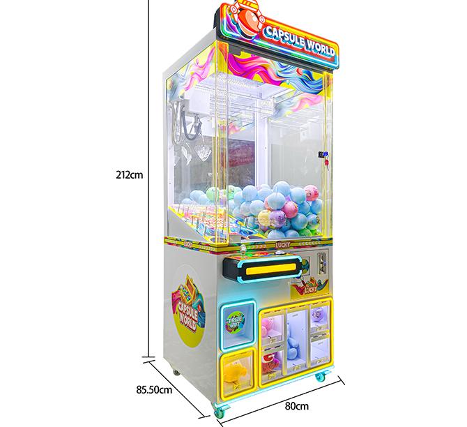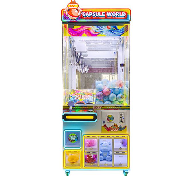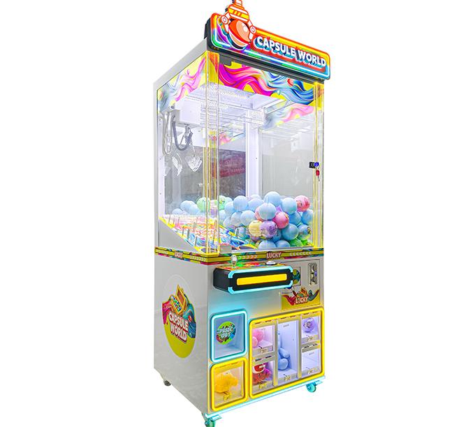- Одновременно несколько режимов игры. Возможность выиграть капсулу с призом внутри и дополнительно возможность выиграть мягкую игрушку в отдельном автоматическом шкафчике.